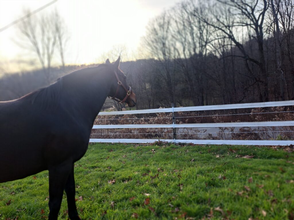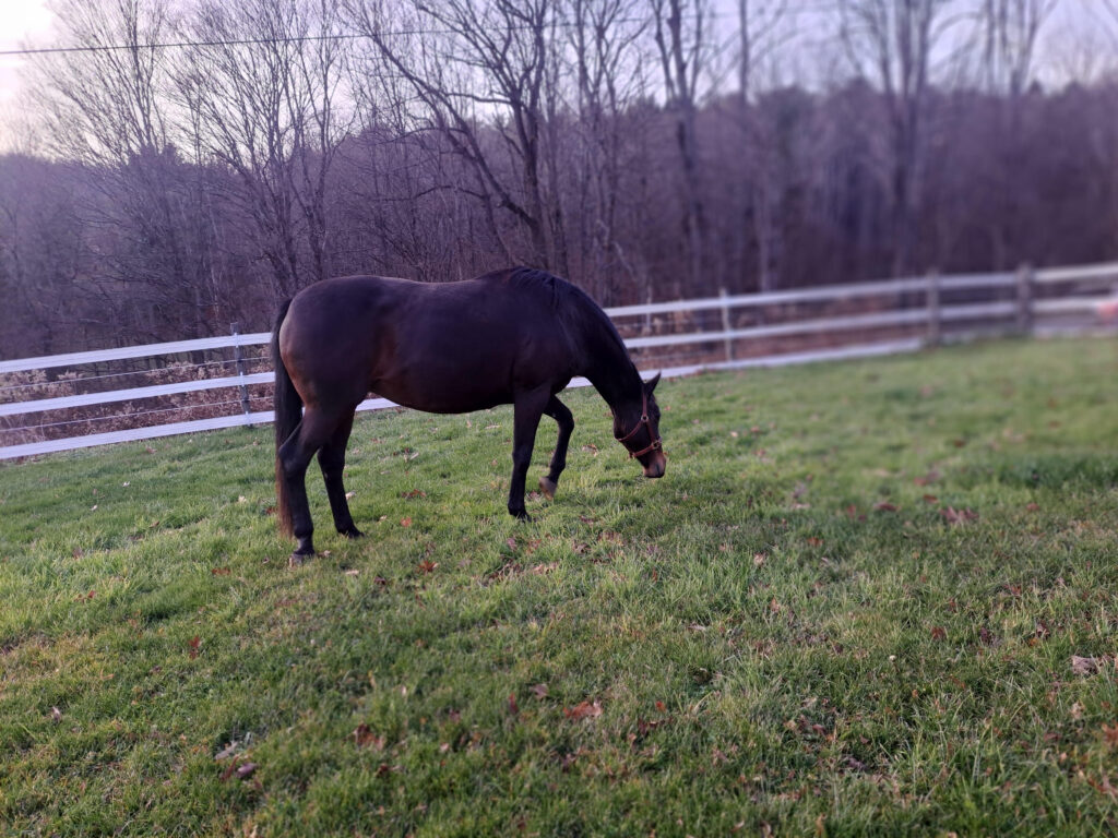 Hurrican Source Hurri is a 16 y/o Irish bred retired broodmare. She will have the winter to chill, and then will be restarted under saddle and available for adoption. This girl is thick!