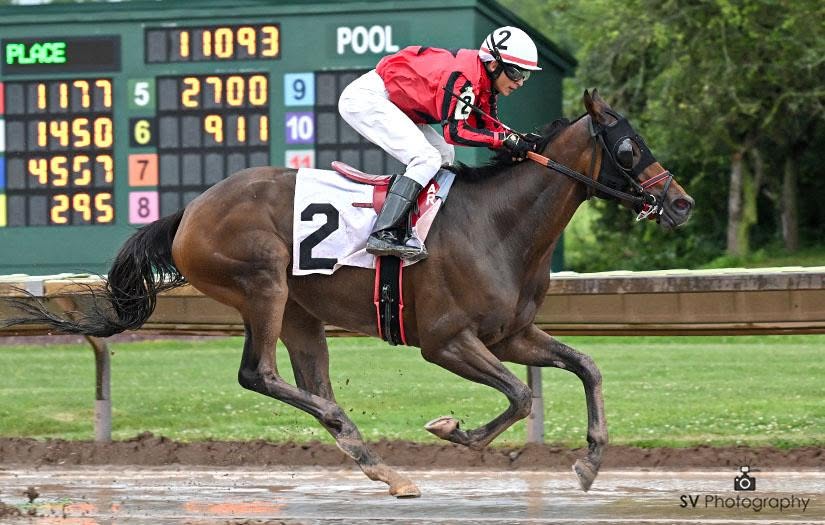 Candy just arrived to SCT. She last raced on November 5, 2025, so she is welcoming the turnout in the company of other horses. Candy has been started on ulcer treatment and will be available for adoption to an experienced home. Candy retired sound and was donated to us through her owner. I would describe Candy as aloof, and hopefully with lots of turnout and love, she will come around. She is eligible for the 2026 TB Makeover and will be suitable for any division, especially hunters, dressage or barrels.